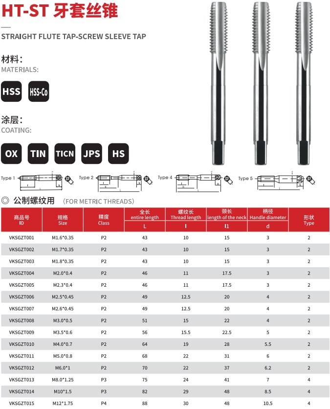 CH Factory Custom HSSE M1-M12 ST Straight Flute Taps