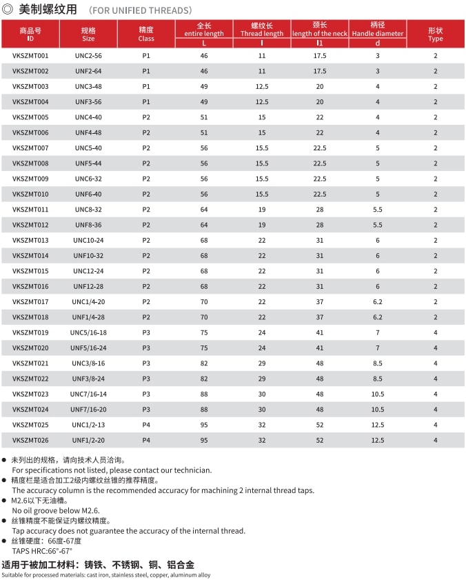 Customized Thread Type: Metric, UNC, UNS, UNF, BSW